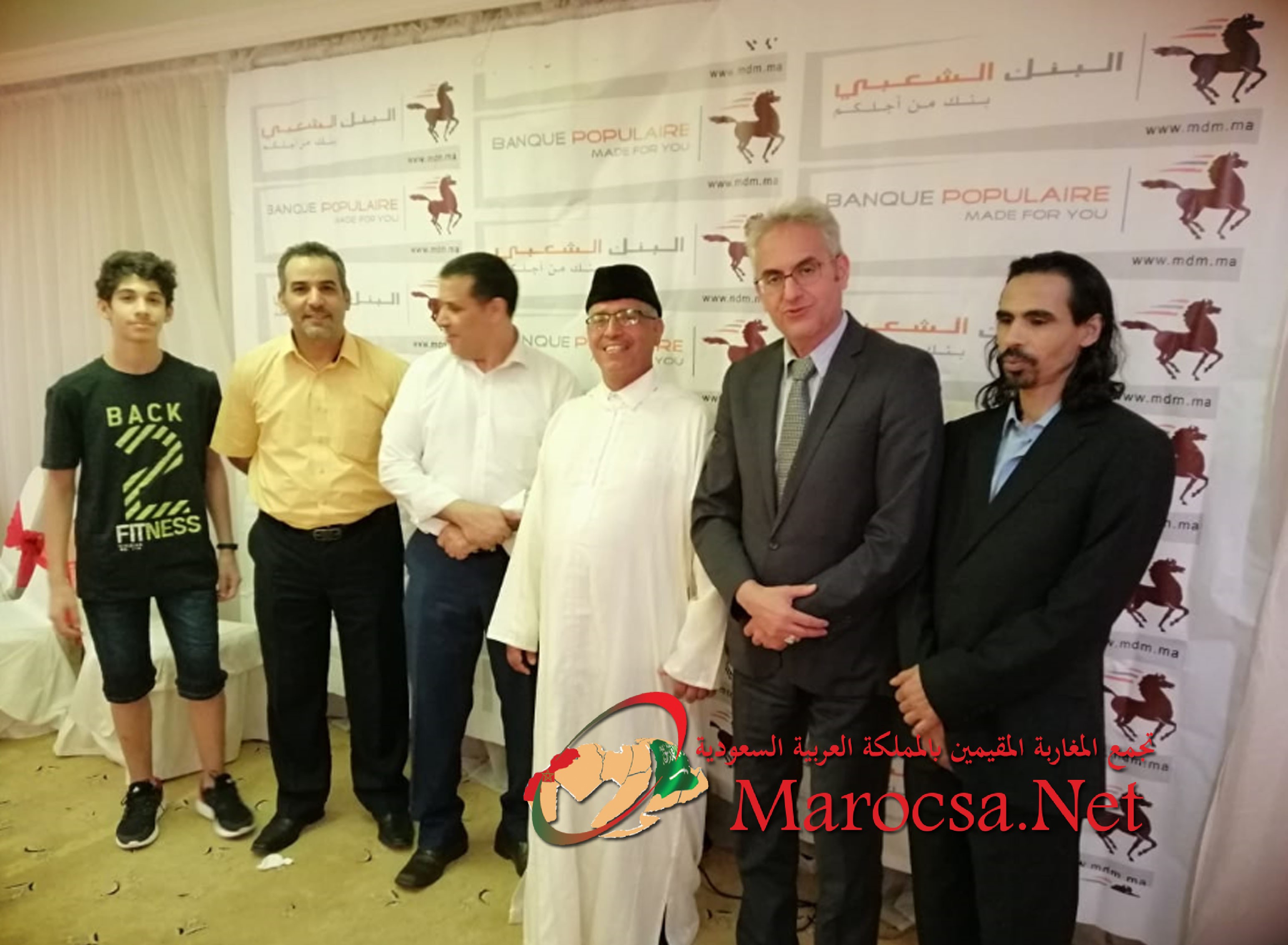 اقام بفندق الستين بالرياض بالمملكة العربية السعودية رئيس واعضاء مكتب المسير لتجميع المغاربة المقيمين بالمملكة العربية السعودية الشقيقة بشراكة مع مؤسسة البنك الشعبي وبحضور عدد كبير من أفراد الجالية المغربية وعدد من الاشقاء السعوديين المدعوين للحفل الى جانب مدعوين من جنسيات مختلفة.